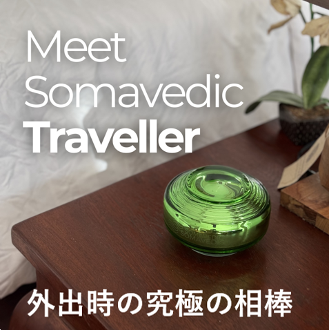 ソマヴェディックの特徴であるグリーンを基調としたトラベラー セカンドジェネレーションは、ソマヴェディックを既に自宅で使用しているお客様の「小型で持ち運び可能な物を」というニーズに添ってデザインされました。